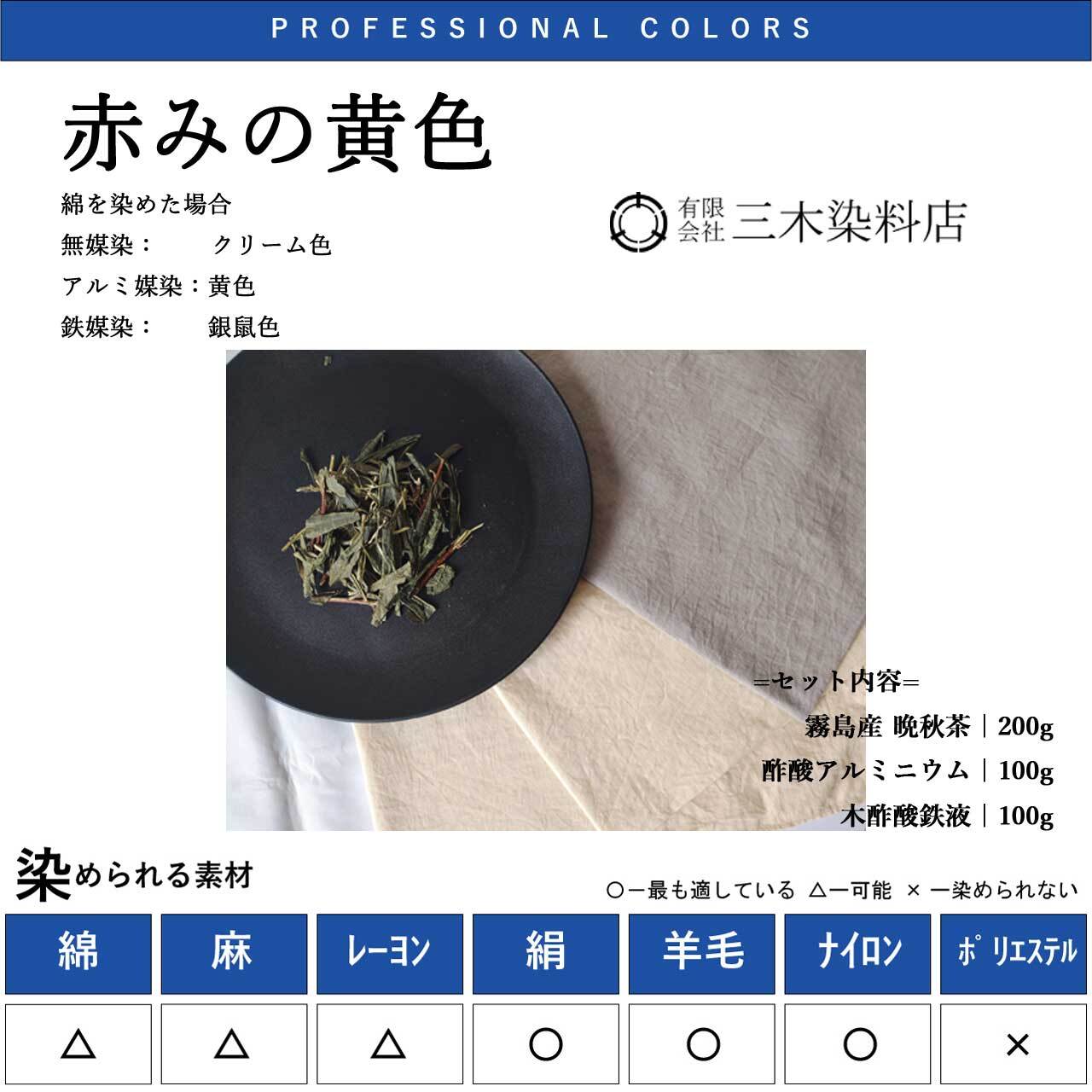 赤みの黄色:アルミ媒染剤