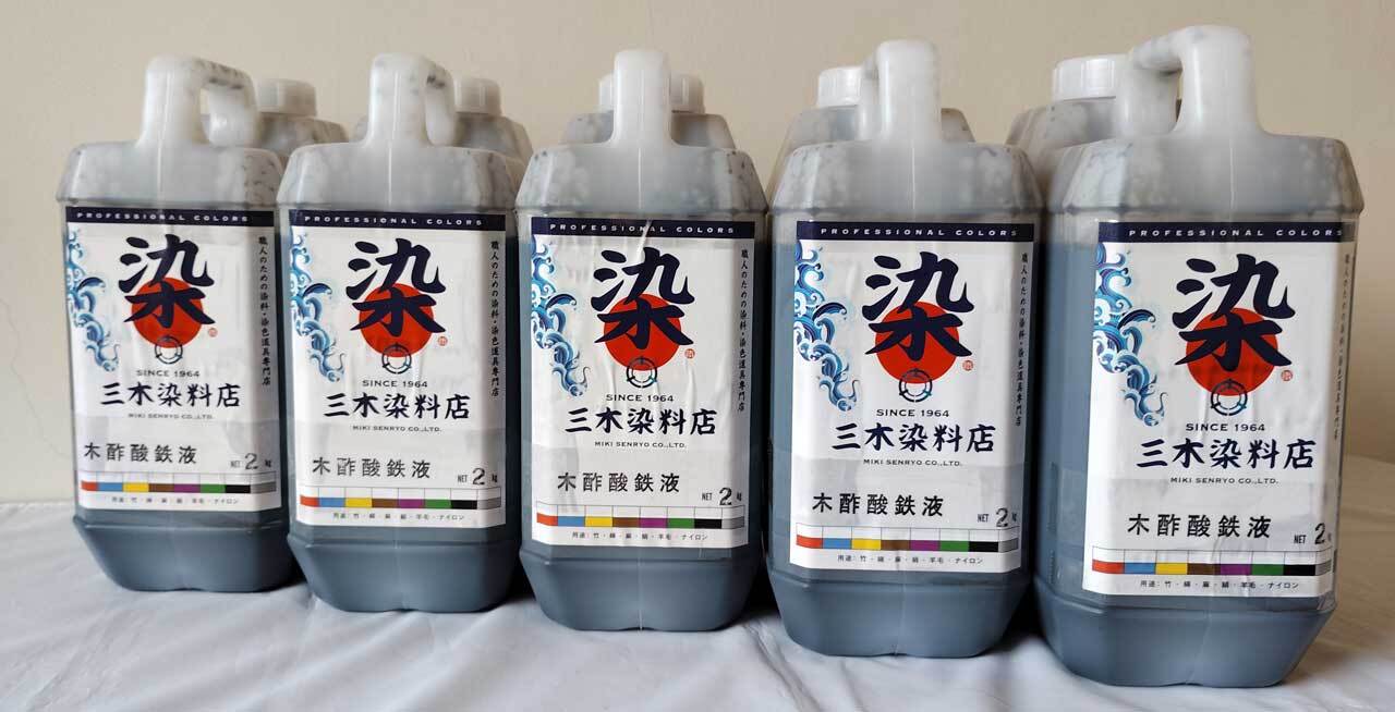 木酢酸鉄液を入れて、鉄媒染を作ります。