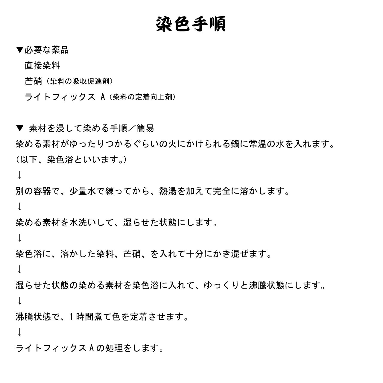 市販の衣類にも使用されている綿・麻・レーヨンを染める粉末の化学染料です。