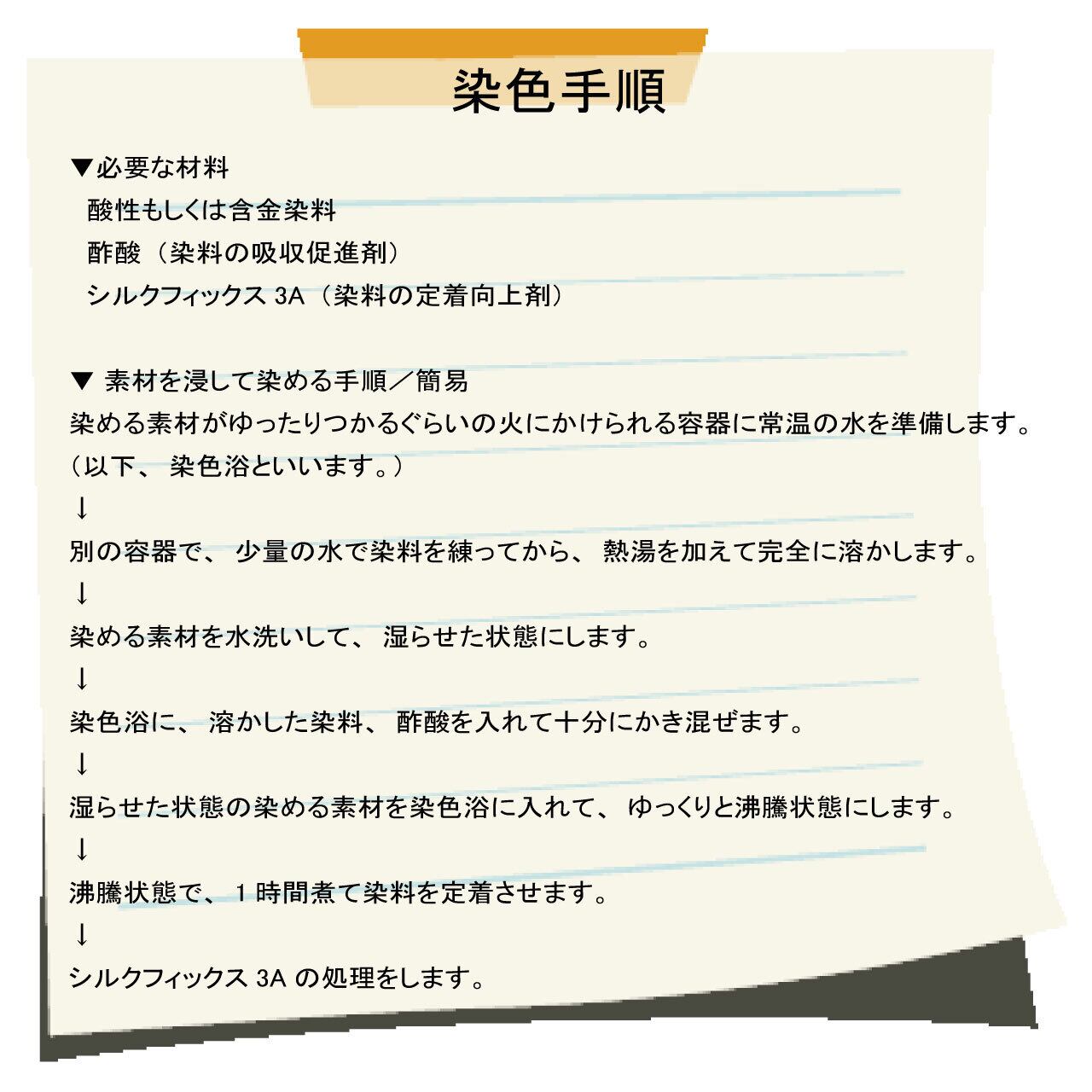 絹、羊毛、ナイロンを染める染料で、染色手順が1番簡単な粉末の化学染料です。