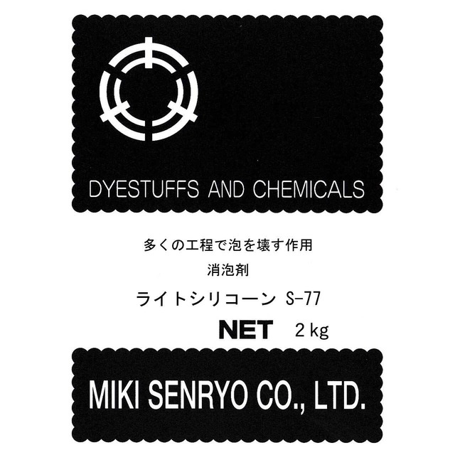 シリコーン系の消泡剤であり、あらゆる泡立ちしやすい液体に対してすぐれた泡を壊す作用と高度の泡立ちの抑制を示します。 精錬染色浴、糸の糊付浴、捺染糊浴、紙・パルプ工業、石鹸、洗浄工業などの泡立ちを抑制します。 内容量 2kg 性 状 外観:白色粘調 イオン:ノニオン 溶解性:温水(50~60℃)に簡単に溶ける。 特 徴 1.微量で、著しい効果があります。 2.長時間の抑制効果があります。 3.不活性であるために、泡立ちしやすい液体になんら変化を与えません。 4.耐熱・耐薬品性が優れています。 5.エマルジョンタイプのため、水と容易に混合できます。 6.酸性、アルカリ性でも消泡効果は殆ど変わりません。 使用量 泡立ちしやすい液体に対して1Lあたり、ライトシリコーンS-77を0.3~0.5 g加えます。 関連項目 他の内容量 https://dyeingtoolshop.mikisenryouten.co.jp/search?q=raitosirikonS77 #raitosirikonS77